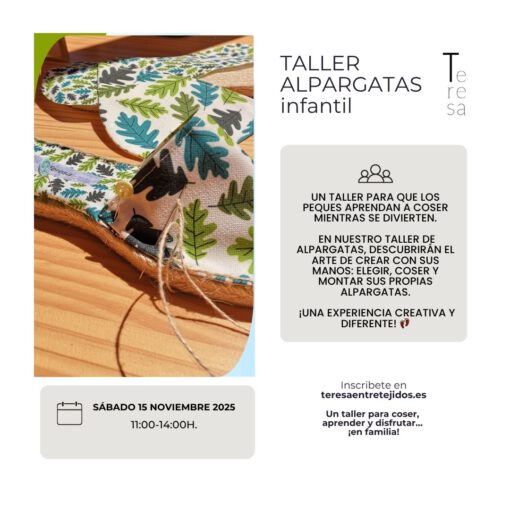 En este divertido taller, los peques aprenderán a coser y montar sus propias alpargatas, descubriendo el placer de crear algo con sus propias manos.